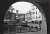 Treviso, la zona della Pescheria affollata di bancarelle: il ponticello e Via Pescheria visti dai portici di Vicolo Pescheria.