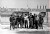 Emigrati italiani ritratti in una pausa di lavoro in un cantiere edile in Svizzera.