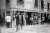 Serravalle, l'entrata della Macelleria di Battista Marino, in Piazza M. Flaminio. In occasione della Fiera di S. Osvaldo a Pasqua tradizionalmente si espongono le carni, i macellai sono in posa tra capi bovini e ovini macellati e appesi all'esterno. Sulla destra l'entrata della "Trattoria alla Cerva". In primo piano due caprette.